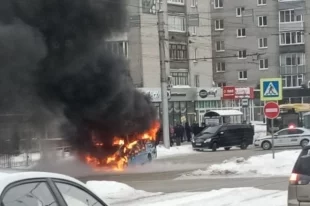 В МЧС назвали предварительную версию пожара в маршрутке в Барнауле