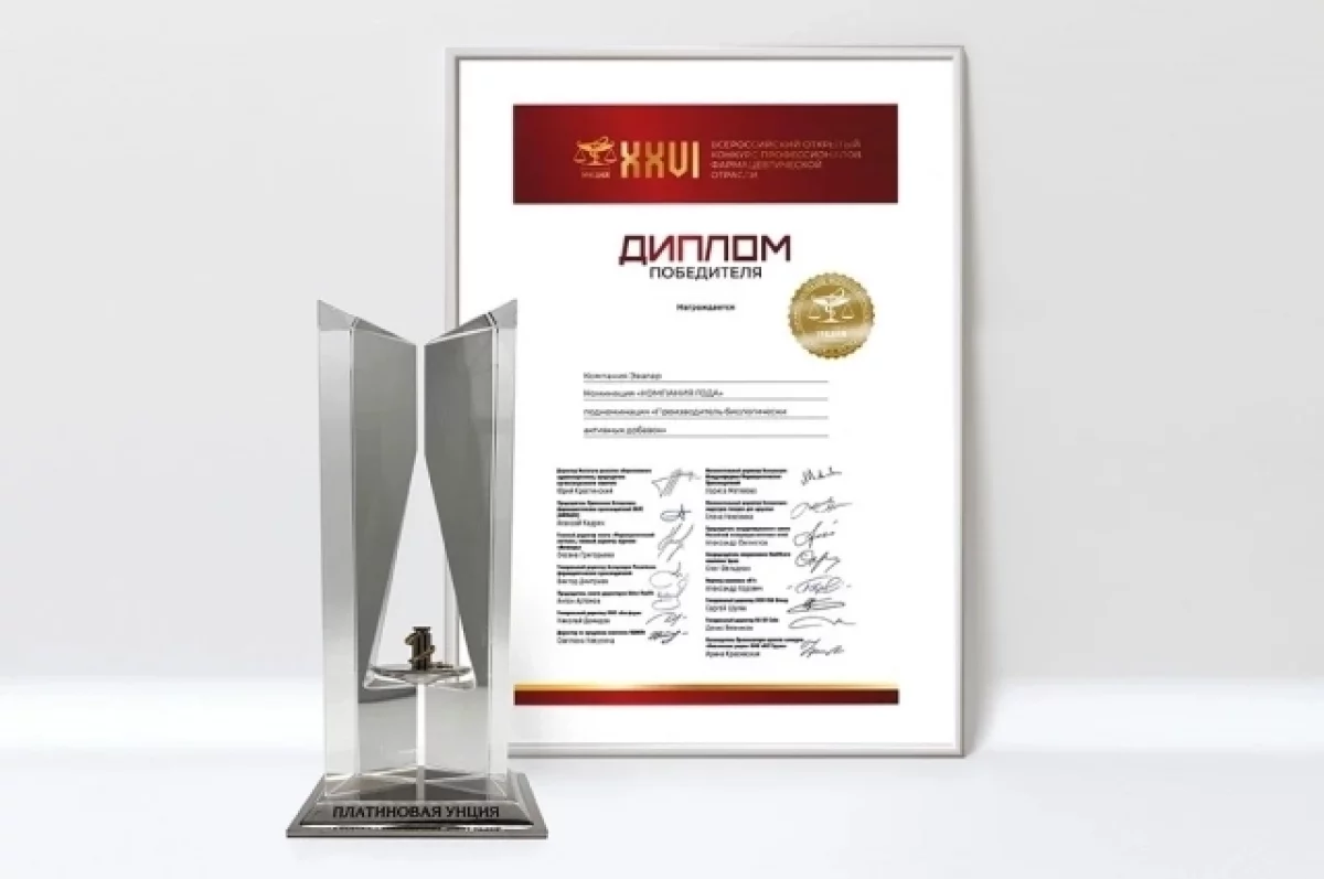 «Эвалар» в очередной раз стал победителем в номинации «Компания года» подноминации «Производитель биологически активных добавок», подтвердив статус крупнейшей в России фармацевтической компании по производству БАД. Премия вручена на церемонии награждения XXVI Всероссийского конкурса профессионалов фармацевтической отрасли «Платиновая унция».
