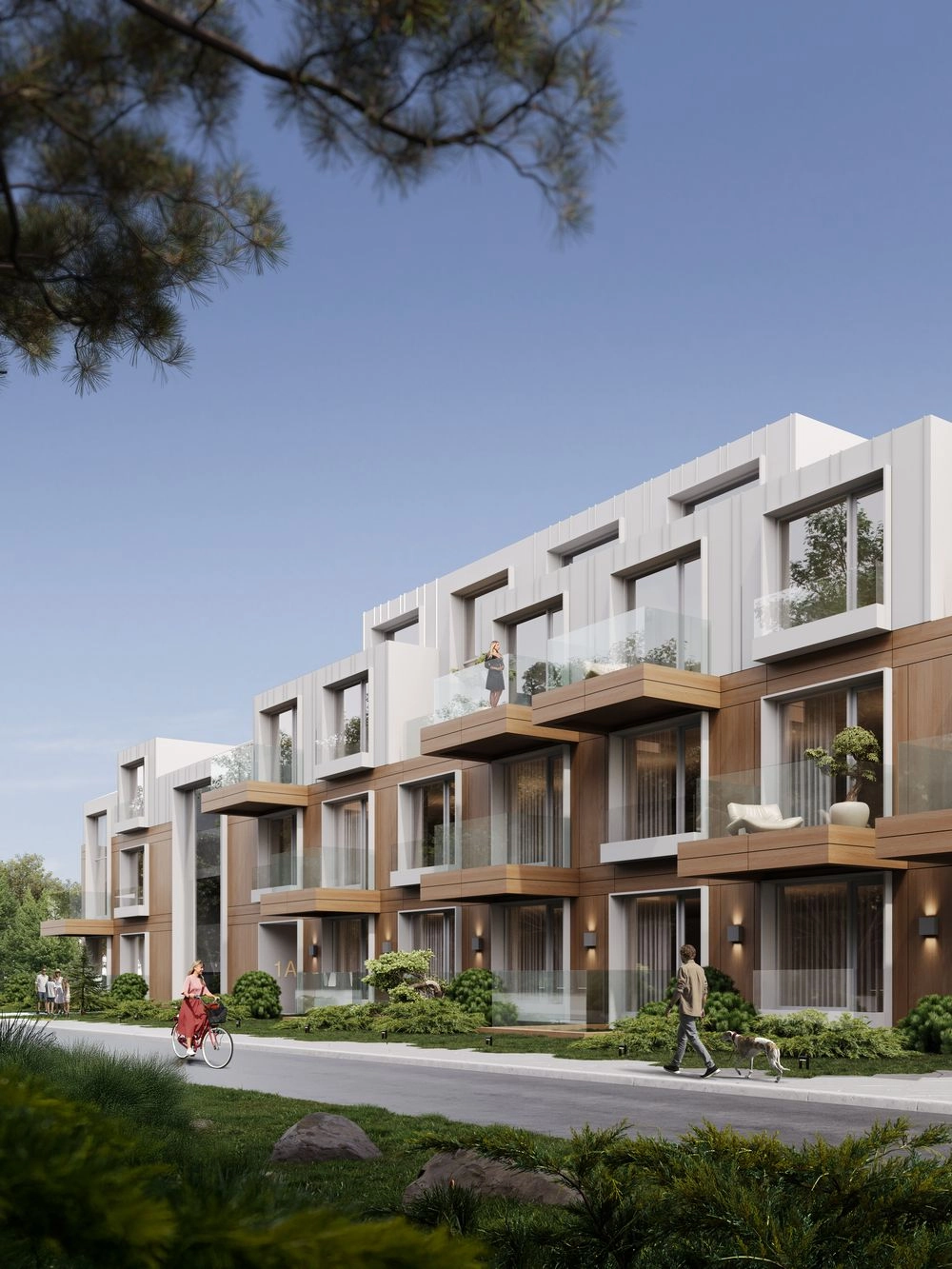 - Последняя линия — четыре трехэтажных корпуса апартаментов. Небольшая этажность, камерность, закрытая территория и продуманная навигация создают ощущение клубного формата, в котором главное — приватность и ощущение «своего» места.