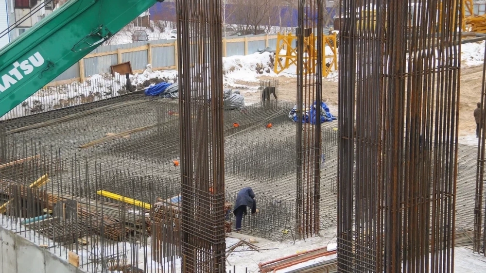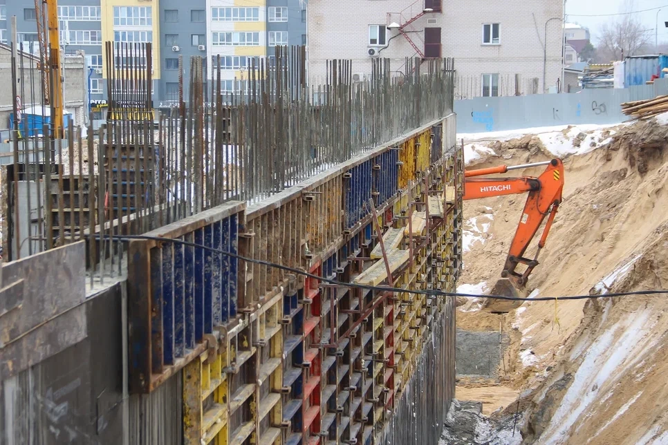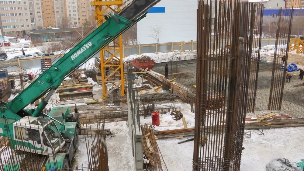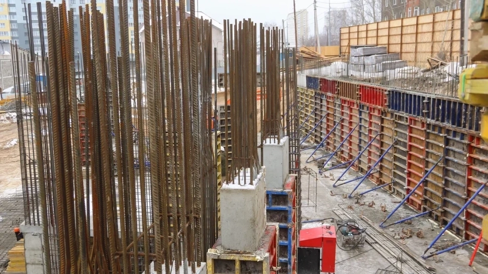 Сейчас на стройплощадке монтируют несущие конструкции. Специалисты устанавливают арматуру большого диаметра, формируя мощные железобетонные колонны — будущий «скелет» здания. Как отмечают наблюдатели, запас прочности закладывается серьёзный.
