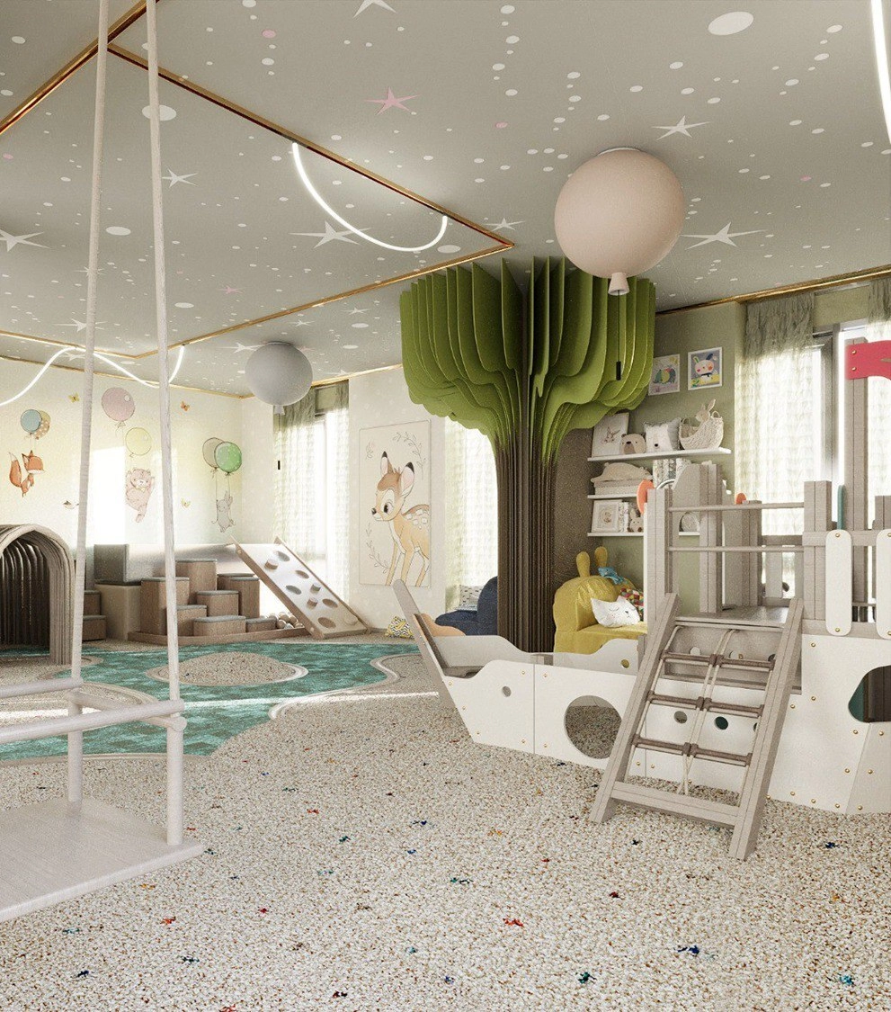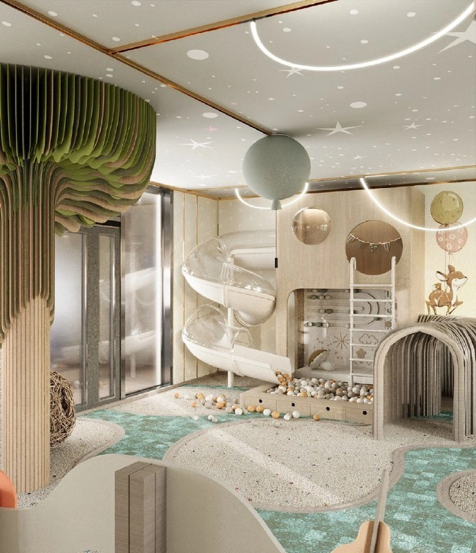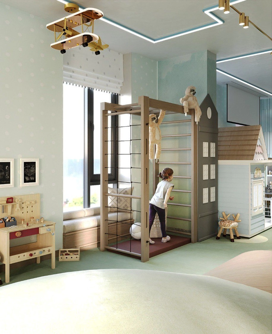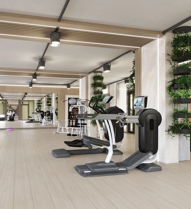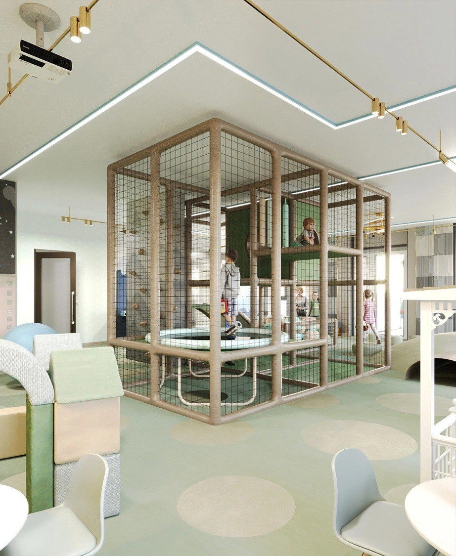 Внутренняя структура комплекса выстроена вокруг идеи добрососедства — и здесь это не громкие слова, а конкретные архитектурные решения. На отдельном этаже «Империала» спроектированы две зоны, разделённые стеклянной перегородкой. С одной стороны — тренажёрный зал, где можно поддерживать форму в любое время. С другой — безопасная игровая зона для детей, которую родители могут контролировать, не выходя из спортзала.