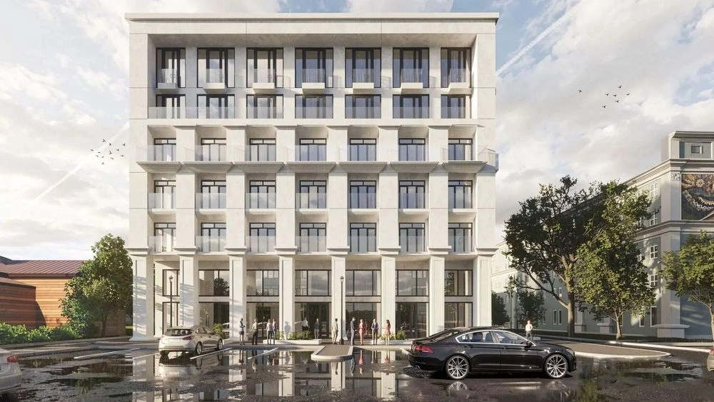 «Элементы балконов имитируют капители и пилястры, что также перекликается с памятником. За счет более светлых тонов он не затмевает существующий облик памятника. Здесь чуть больше витражного остекления, что завязано с уже заданной застройщиком бизнес-центра О2», — пояснила Любовь Пшеничкина.