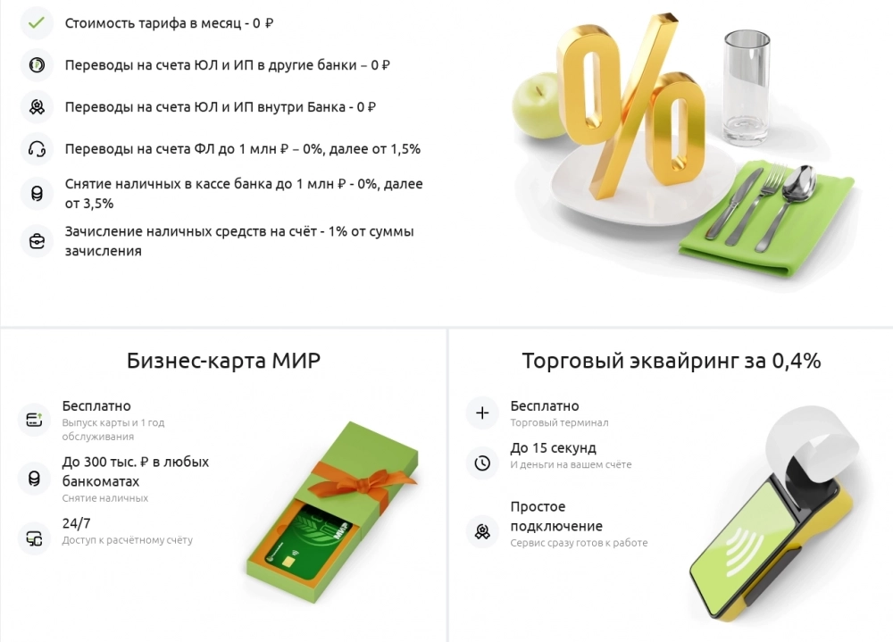 В рамках конкурса Россельхозбанк презентовал продукты для малого и среднего бизнеса и рассказал про пакет для бизнеса «Шеф в деле», который предполагает бесплатное открытие и обслуживание расчетного счета, бесплатные безлимитные переводы на счета юридических лиц и индивидуальных предпринимателей в другие банки, бесплатные переводы на счета физических лиц до 1 млн руб., бесплатное снятие наличных в кассе банка до 1 млн руб., а также комиссию в 0,4% за торговый эквайринг.