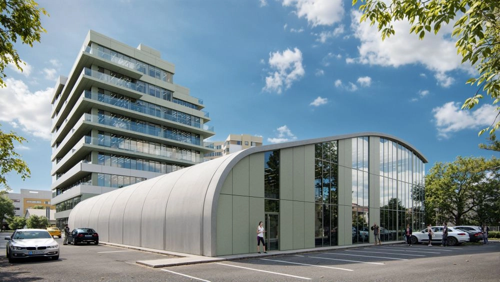 Проект девятиэтажного здания разработало архитектурное бюро «Классика» под руководством Александра Деринга. Весной 2025 года концепцию одобрил градостроительный совет. Эксперты подчеркнули, что комплекс поможет закрыть потребность района в современных офисных и спортивных помещениях.