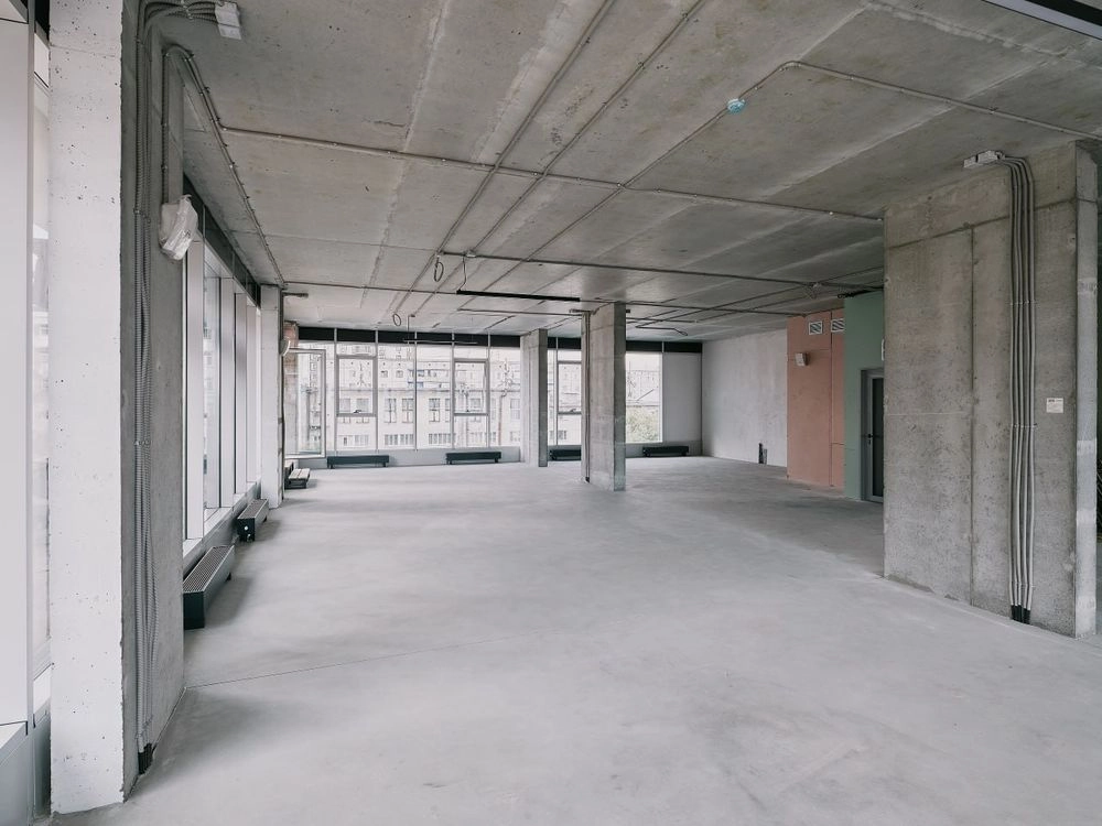 В настоящее время деловое пространство сдается без отделки, при этом включает в себя стяжку пола, разводку электричества и инженерных сетей. Внутри помещения уже установлены радиаторы, входные двери.