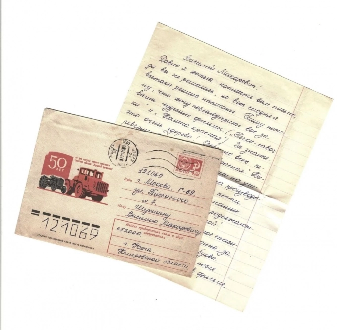Особую ценность представляет личная переписка: письма и телеграммы, адресованные как самому Василию Макаровичу, так и его супруге Лидии Федосеевой-Шукшиной, письма матери писателя – Марии Сергеевны Куксиной, и переписка между Шукшиным и другим классиком «деревенской прозы» – Василием Беловым.