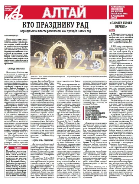Еженедельник «Аргументы и Факты» № 50. АиФ-Алтай 10/12/2025