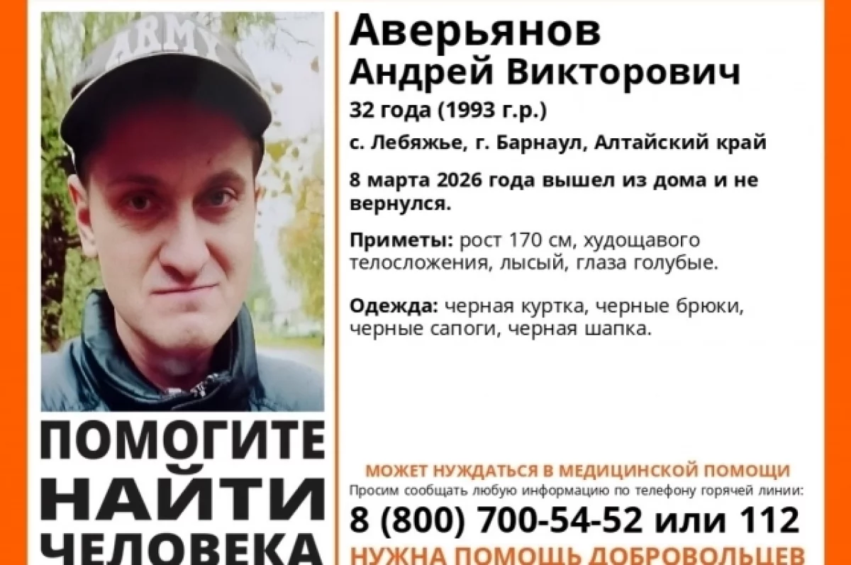 В селе Лебяжье в пригороде Барнаула 8 марта пропал 32‑летний мужчина. Как сообщают волонтёры поискового отряда «ЛизаАлерт», мужчина вышел из дома и загадочно исчез.