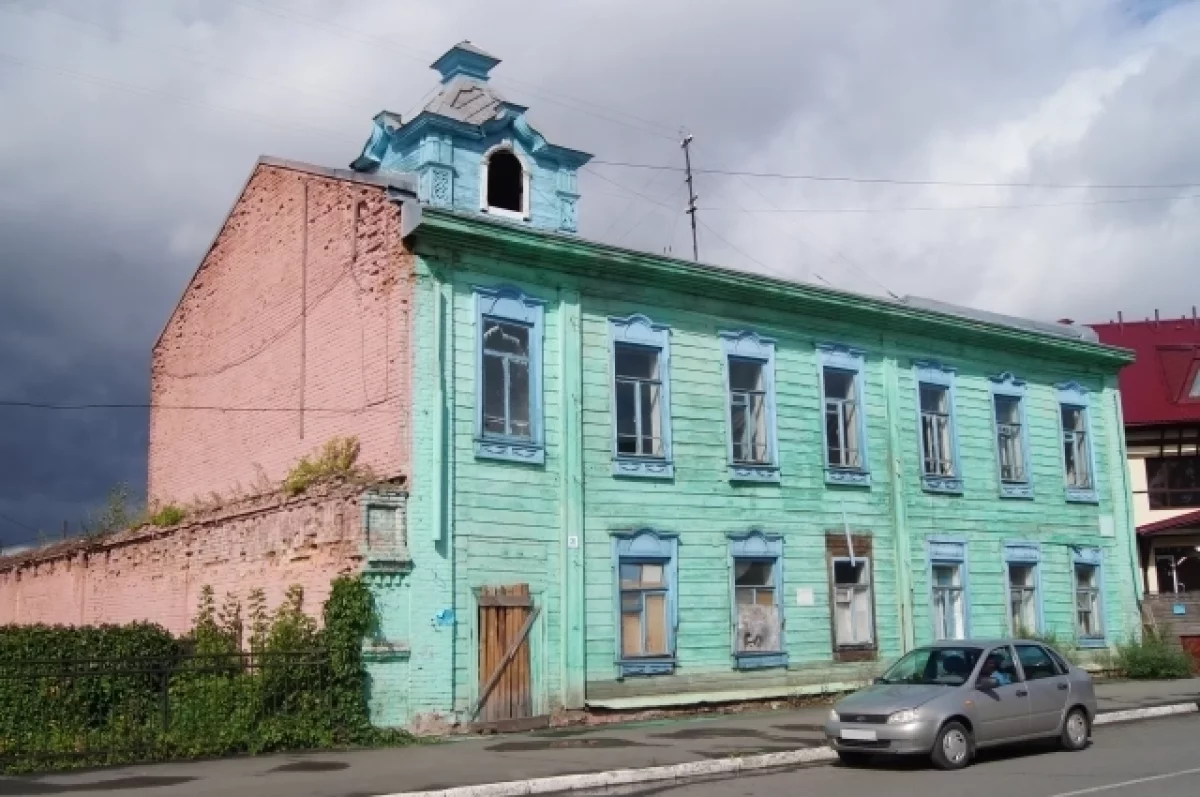 Особняк площадью 317,6 кв. м муниципалитет пытался реализовать более пяти лет. Здание имеет уникальную архитектуру: двухэтажный деревянный дом с двумя кирпичными стенами, главной особенностью которого является чешуйчатый шатер с башенкой на крыше. Долгое время особняк, находившийся в плачевном состоянии, был скрыт от глаз прохожих фальшфасадом. Вместе со зданием в собственность компании перешел и земельный участок площадью более тысячи квадратных метров.