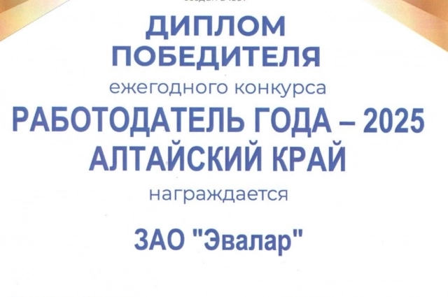 «Эвалар» стал победителем ежегодного конкурса «Работодатель года – 2025. Алтайский край». Участниками конкурса стали предприятия, состоящие в Союзе промышленников Алтайского края.