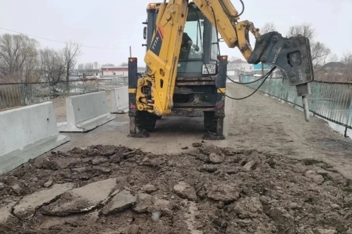 Ремонт выполняется поэтапно — в настоящий момент работы ведутся на одной половине сооружения. Специалисты Барнаульского ДСУ № 4 уже демонтировали конструкции старой части проезжей части. Сейчас они занимаются подготовительными работами: увеличивают насадки опор.