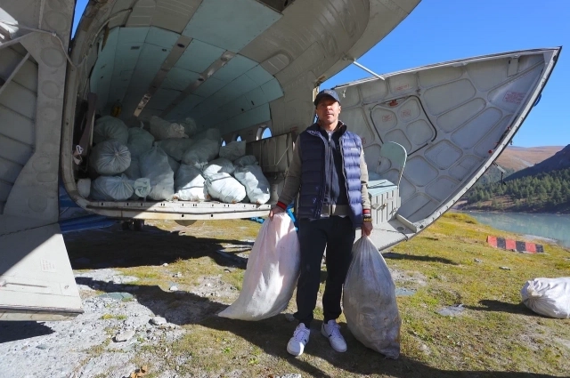 Акция охватила не только Белуху, но и экологические тропы вокруг нее. За 12 дней волонтеры собрали порядка 200 мешков мусора общим весом 2100 килограмм. Из-за сложного рельефа и труднодоступной местности мусор пришлось вывозить с помощью вертолета МИ 8, который совершил три перелета.