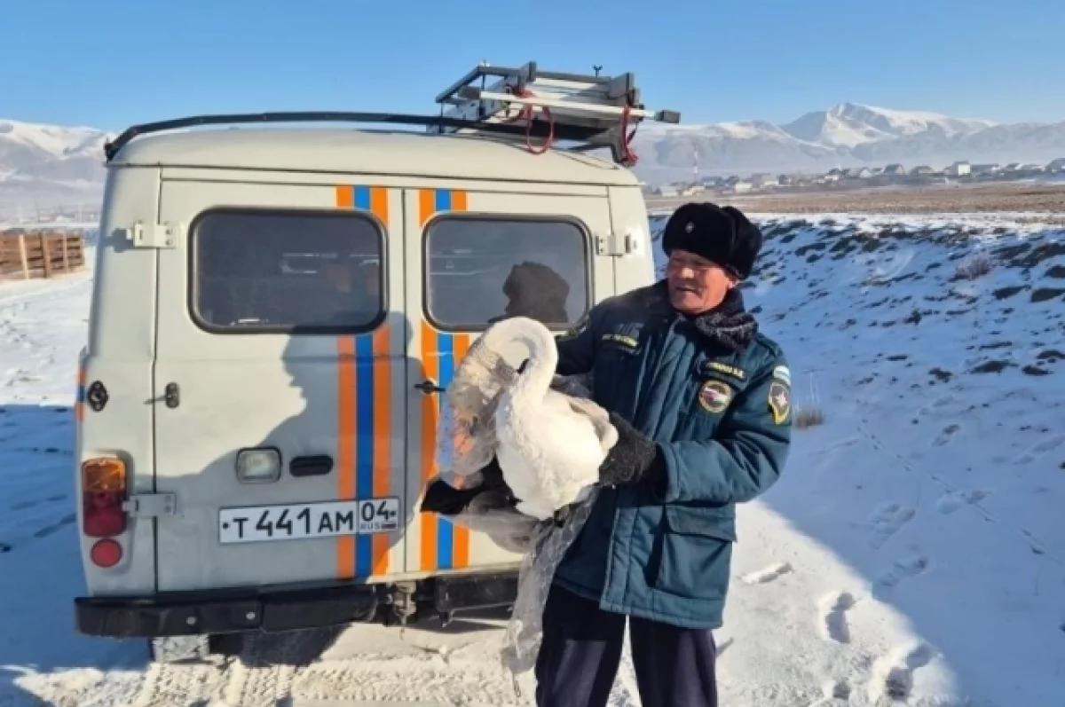 Пожарные в Республике Алтай спасли лебедя от стаи собак. Сообщение о том, что птице требуется помощь, поступило в Кош-Агачскую пожарную часть от неравнодушных граждан.