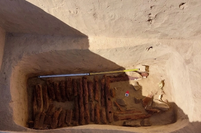 Археологи поделились — раскапывать захоронение было сложно, так как оно находится на большой глубине — более трех метров, а сверху его прикрывает большая масса камней. Несмотря на то, что верхняя часть погребения была разрушена, удалось найти колчан со стрелами — его кочевники положили между гробом и срубом.