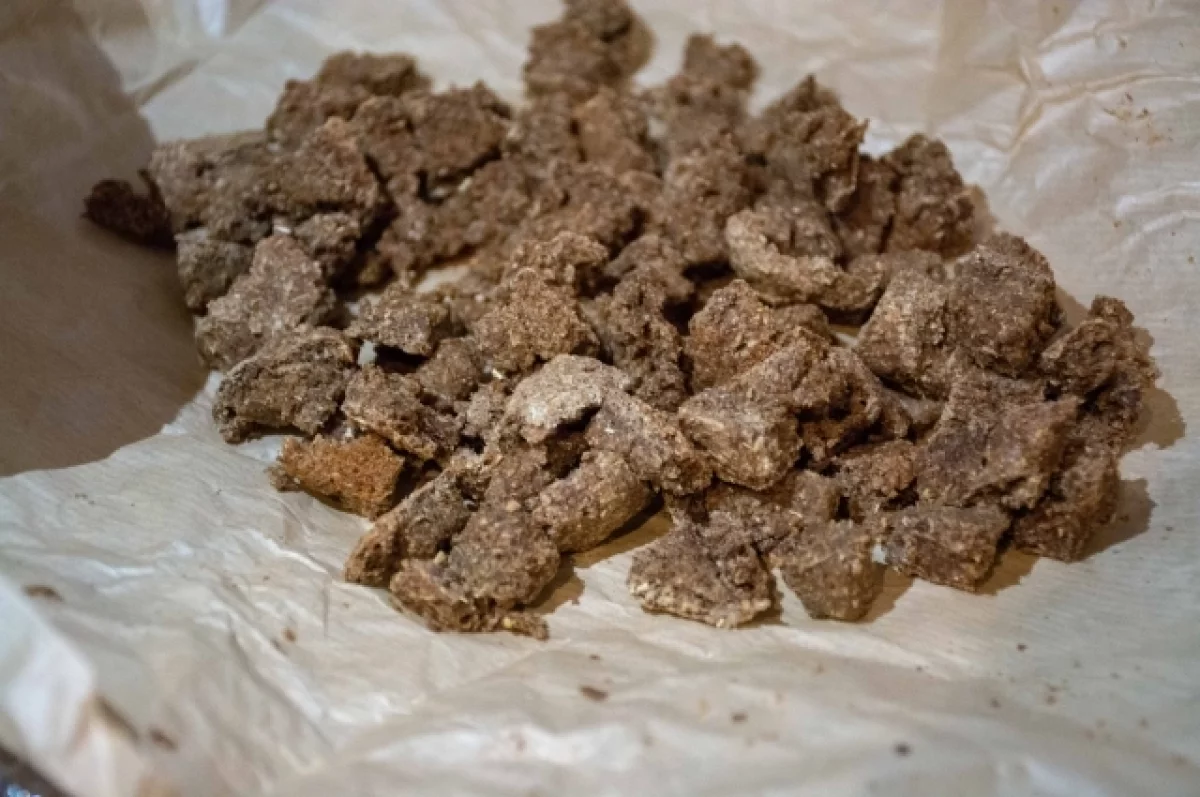 Характеристики: чёрный, липкий, с запахом плесени и трав. Калорийность - около 160 ккал на пайку (10% от суточной нормы). Этого едва хватало, чтобы поддерживать силы.