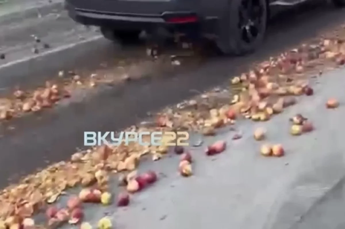 Как сообщили очевидцы в канале max.ru/vkurse22, яблоки валились из грузовика прямо на ходу. На всю улицу стоял потрясающий запах.