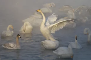 Рекордное количество лебедей-кликунов прилетело на Алтай на зимовку